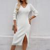 Autumn Winter Long Sleeve Hip Dress Solid Color O Neck Drawstring Pit Knit Pack