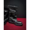 Cowhide version~ Western cowboy boots women's pleated stacking boots black round head retro leather boots thick heel knight boots