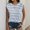 GMXIA Top Summer Casual Simple Crew Neck Striped Pullover T-shirt Women