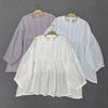 Johnature Japonské krajkové panelové skládané topy, letní volné košile s dlouhým rukávem, krajkové topy s balonovými rukávy