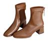 Podzimní a zimní obuv nadměrných velikostí Pohodlné dámské kožené boty s krátkou trubkou se silnou podrážkou se zadním zipem na čtvercovém podpatku a středním podpatku