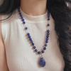 Originální přírodní primární barva A kvalita Lapis Lazuli korálkový náhrdelník Retro Cheongsam klíční kost řetízek doplňky 362
