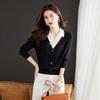 Women Autumn Winter Solid Fake Two Piece Causal V-Neck Top Long Sleeve Knitwear Knit Sweater Cardigan