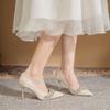 Dámské letní boty, boty na podpatku, špičaté špičky, perlové stylové vysoké podpatky, oblíbené 39