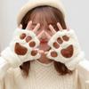 Plush cat paw women's gloves winter warm half-finger gloves cute neck cartoon student plush thickened gloves