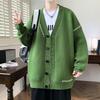 Men Cardigan Sweater Retro American Style V Neck Loose Single-breasted Contrast Color Knitted Sweater Coat Hip Hop Style Streetwear Jacket