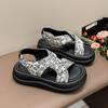thick-soled crossed Roman sandals women's 2024 new summer casual versatile stepping on shit feeling open-toed flat women's shoes