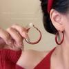 Ankola Red Hoop Earrings: French Autumn/Winter Style with Brushed Silver Needle, Perfect for Round Faces