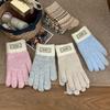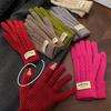 Dámské pletené rukavice ze směsi růžové vlny - roztomilé zimní cyklistické rukavice korejského stylu odolné proti větru