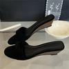 Women Temperament Slippers 3cm Velvet Mules Wedge Sandals Slipper Open Toe High Heels Casual Dress Party Woman Shoes Plus Size