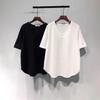 Irregular White Long-sleeved T-shirt for Women's Spring and Autumn Large Size Loose Mid-length Pure Cotton V-neck Base Shirt Underwear