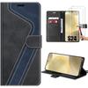 Coque et 2 Verres Trempés pour Samsung Galaxy S24 FE (pas pour S24) Anti-Rayures Cuir PU Noir-Bleu Marine