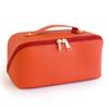 Makeup Travel Bag PU Leather Large Capacity Checkered Multifunction Waterproof Cosmetic Bag Orange