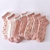 5 Pairs Cotton Women's Spring Autumn Casual Breathable Cute Three-dimensional Flowers Embossed Pink Mid-calf Socks