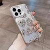 For iPhone 16 Pro Case Rhinestone Edge Electroplating Heart Shape Decor Soft TPU Phone Back Cover