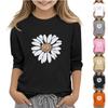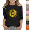Children's 7 Point Sleeve Printed Sunflower Round Neck Casual T-shirt