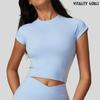 High Strength Small Fly Sleeve Running Fitness Short Sleeved Sports T-Shirt For Women, Tight Fitting Quick Drying Yoga Top For Women