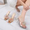 Shoes for Women Sexy Woman Slippers Heeled Sandals Clear Open Toe Slides Crystals Shoe H Sandal Easy Wears Low Price Stylish Vip