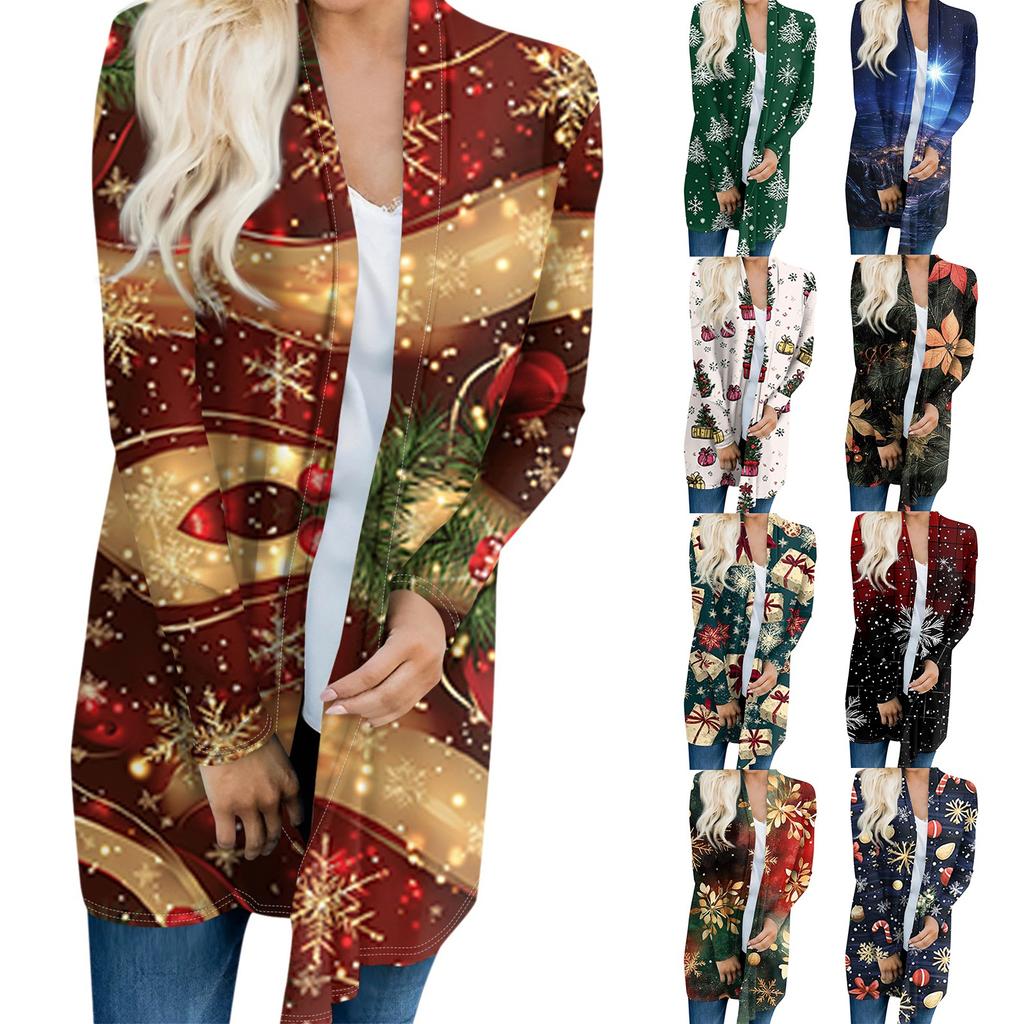 Dámský módní ležérní kardiganový kabátek střední délky s vánočním stromkem