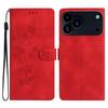 For iPhone 17 Pro Max Case Leather Imprinted Flower Phone Cover Wallet with Wrist Strap