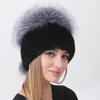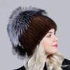 Women's Russian Winter Hat Genuine Fox & Mink Fur Knitted Beanie with Fleece Balls, Warm Trapper Cap for Cold Weather