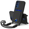 For Samsung Galaxy A24 4G (162.1 x 77.6 x 8.3mm) Liquid Silicone Case Phone Back Cover with Card Holder and Short Strap