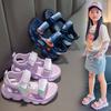 Girls Beach Shoes Open Toes Soft Sole Kids Casual Shoes Non-slip 2025 Summer New Children Sandals with Rotating Button Sweet