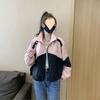 Women's American Retro Color Block Patchwork Design Stand Collar Baseball Jacket Loose Windbreaker Jacket for Autumn