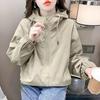 Women's Khaki Short Hiking Windbreaker Jacket Lightweight Cargo-Inspired Sports Top for Spring and Autumn