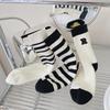 5 Pairs of Women's Casual Sports R-shaped Mid-calf Socks, Striped Cotton Socks, Breathable and Sweat-absorbing Black and White Trendy Socks