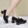 Pointed single shoes women's new cow patent leather metal buckle low heel square heel four-season shoes small leather shoes