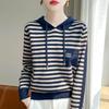 New Autumn Winter Hooded Plush Sweatshirt for Women Fashion Printed Long-sleeved Jacket Loose Striped Top Ins Trendy