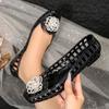 Fashion niche design grid hollow crystal sandals new summer with skirt flower transparent hole shoes
