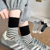 5/10 Pairs Casual Women's Mid Calf Socks Spring Summer Lightweight Black and White Striped Embroidered Cotton Socks Cute Teenage Girls' Long Socks