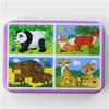 Kindergarten Children Wooden Puzzle 9/12/15/20 Pcs 4 in 1 Cartoon Animal Jigsaw with Iron Box Kids Educational Toy