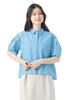 The sleeves are attractive with voluminous layers of tucks. Buttons at the back add an accent to the back style. The hemline, which is different in front and back, creates a sophisticated mood.