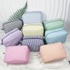 Seersucker Makeup & Toiletry Bag: Large Capacity, Embroidered, Striped Travel Clutch