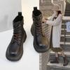 2024 New Women hot Boots Lace-up Leather Platform Women Boots British Style Thick Sole Increase Height Boots Botas Mujer