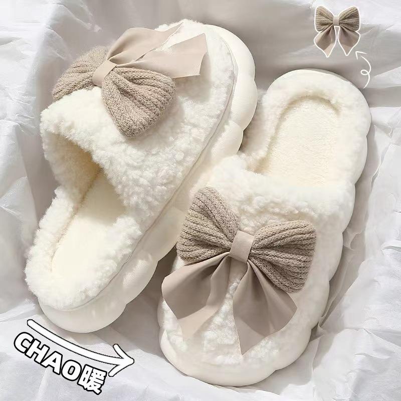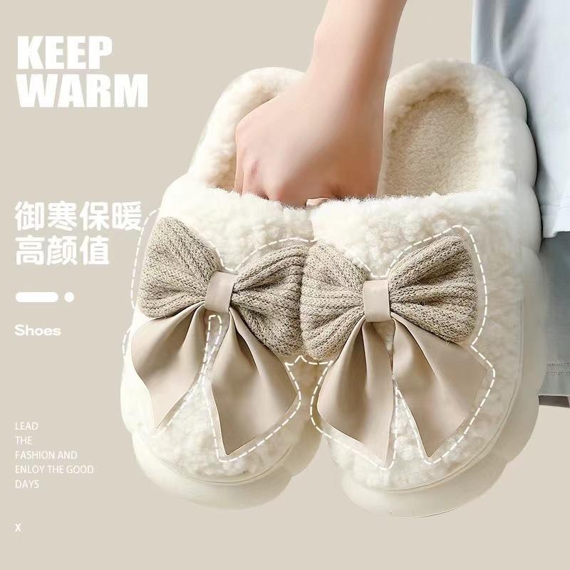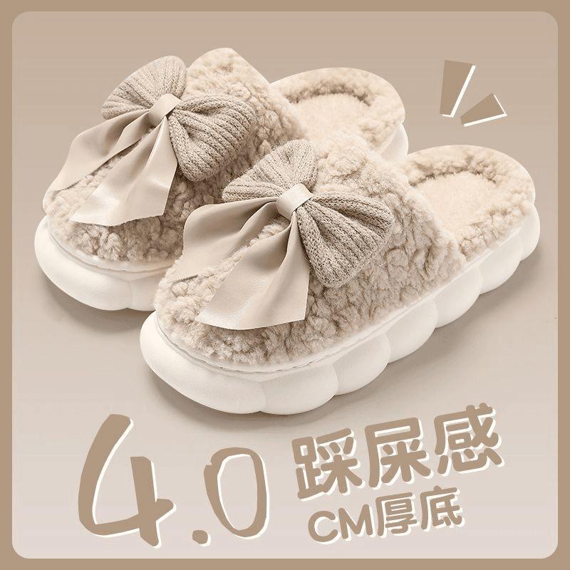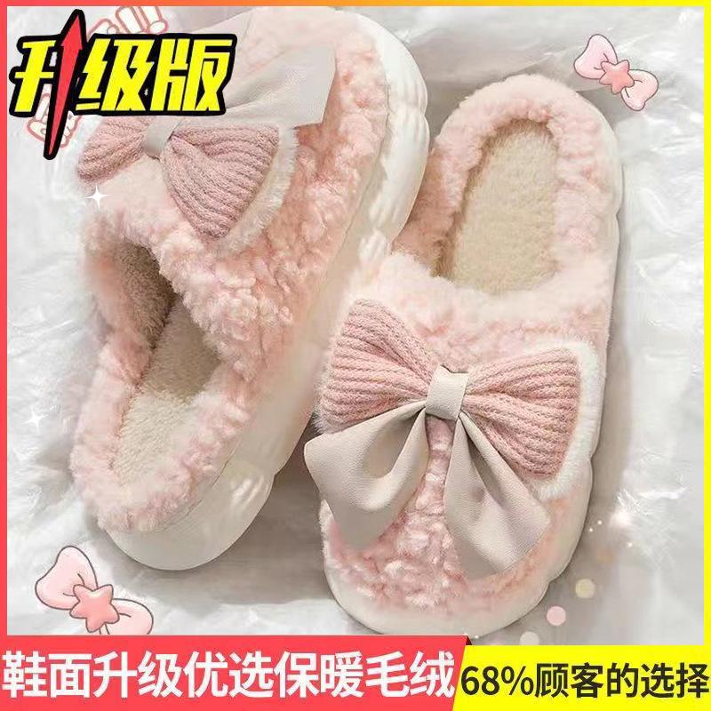 Bow cotton slippers women's thick bottom super soft autumn and winter new indoor home non-slip slippers winter