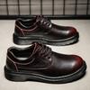 Pánské luxusní značkové nízké pohodlné šněrovací boty s kulatou špičkou, ležérní kožené kotníkové pracovní boty v britském stylu pro muže
