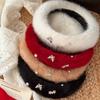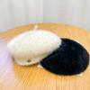 Korean Version of Versatile Bow with Rabbit Fur Backwards Beret White Women's New Winter Sweet and Cute