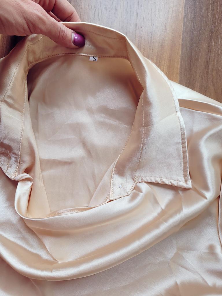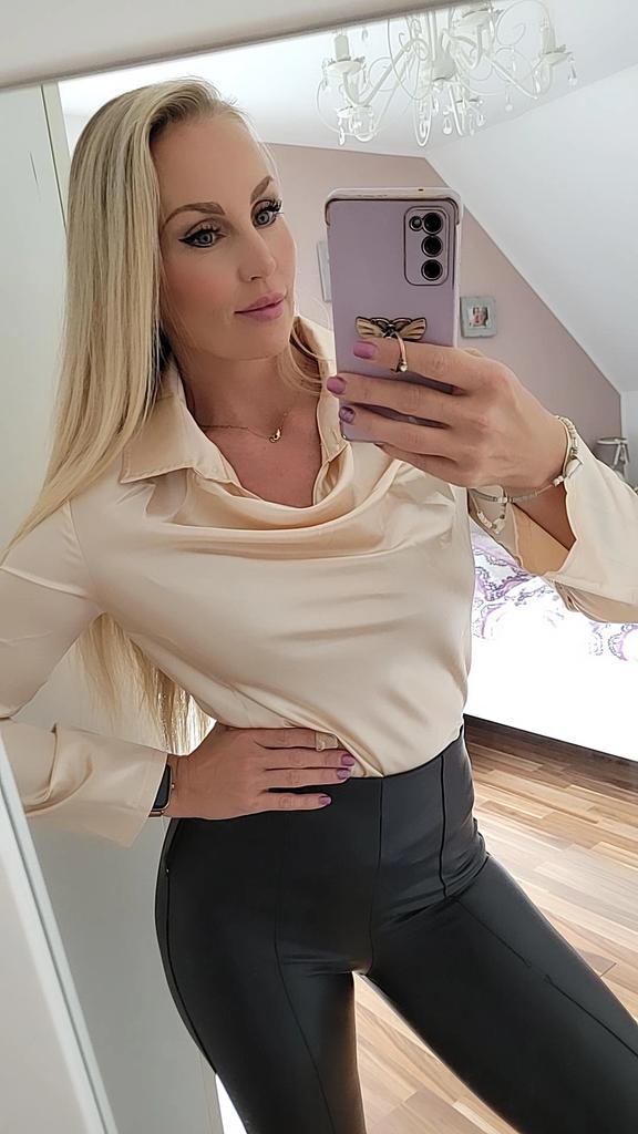 * Halenka s vodopádovým výstřihem * 💥𝗟𝗶𝗲𝗳𝗲𝗿𝘇𝗲𝗶𝘁 24 dní do Německa 💥𝗟𝗶𝗲𝗳𝗲𝗿𝘂𝗺𝗳𝗮𝗻𝗴 Součástí dodávky je 1 saténová halenka v odpovídající barvě a velikosti. Je k dispozici v mnoha různých barvách ve velikostech S až XL. Objednal jsem si top v šampaňské barvě ve velikosti S. Nosím velikost 36 až 38. Vážím 62 kg přes 172 cm. Velikost poháru 75D. Mně to sedí docela dobře, mohlo by to být minimálně o kousek volnější na hrudi, aby vodopádový výstřih ještě lépe splýval.. 💥𝗤𝘂𝗮𝗹𝗶𝘁ä𝘁 Vrchní díl je zcela neprůhledný. Halenka není elastická a nepovolí.. Látka je lehce lesklá, ale spíše pevná a ne splývavá. Bohužel je také poněkud mačkavá, jak je vidět z fotografií a videí.. Látka trochu připomíná satén. Zvláště se mi líbí vodopádový výstřih a límec. Rukávy jsou střižené trochu volněji a nejsou přiléhavé.. Blůza je mi minimálně těsná v horní části paží a na hrudi. Proto doporučuji blůzu raději o číslo větší. Pro materiálové složení : 95% Polyester a 5% SPANDEX 💥𝗙𝗮𝘇𝗶𝘁 Velmi elegantní dámská halenka se speciálním výstřihem a límcem působí díky saténové látce velmi noblesně, super vhodná pro zvláštní příležitosti nebo business outfity.. Doporučuji objednat halenku o číslo větší než obvykle, aby vodopádový výstřih krásně splýval.