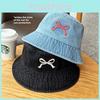 Bow embroidered denim fisherman hat children spring and summer fashion travel sunscreen sunshade basin hat