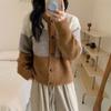 Retro contrasting striped plush soft waxy knitted cardigan women's autumn and winter age-reducing short retro coat