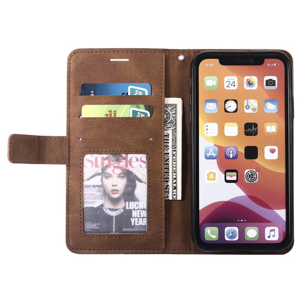 Kožené pouzdro pro iPhone 11 s popruhem, na dotek příjemné prošívání, peněženkový kryt na telefon