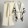 Dámský pletený kardigan a kalhoty se širokými nohavicemi v evropském stylu na podzim/zimu