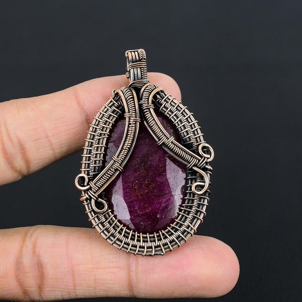 Ruby Pendant Gemstone Jewelry, 999 Copper Wire Wrapped Handmade Pendant, Latest Design Jewelry