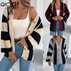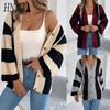 HNXC Autumn and Winter Color-blocking Striped Lantern Long-sleeved Cardigan Sweater Short Coat Women's Wear