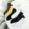 Autumn and Winter Women's Socks Mid-calf White Cartoon Student Bear Rainbow Letter Heart Smiling Face Striped Sports