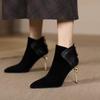 Fashion 2024 Autumn Women Ankle Boots Elegant Brown Suede Short Botas Mixed Leather Iron Thin High Heels Black Botines Femininos Zapatos